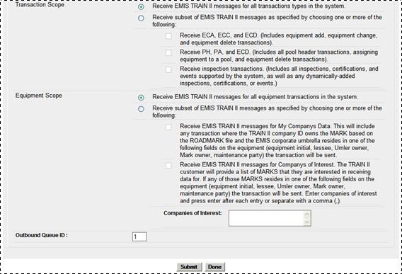 Note: The user is expected to understand the functions of the various TRAIN II messages and whether the company needs to receive those messages. Refer to the TRAIN II User Manual available using the upper right Help link.